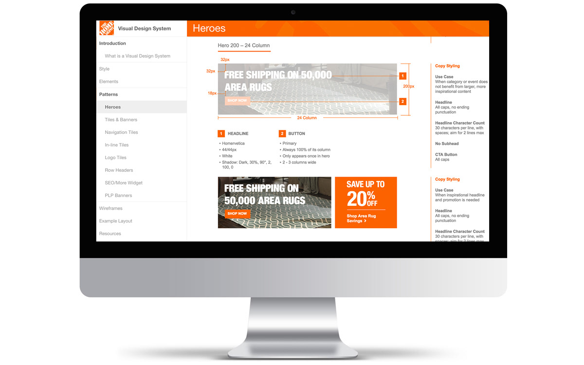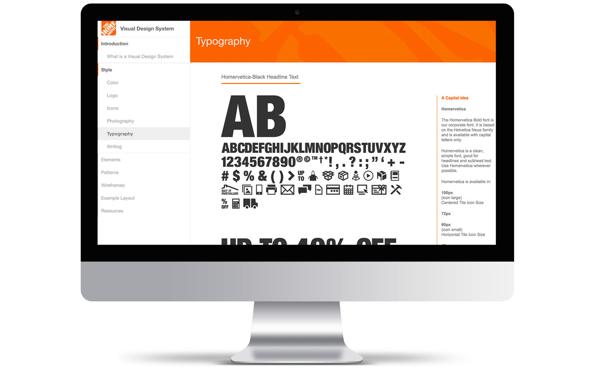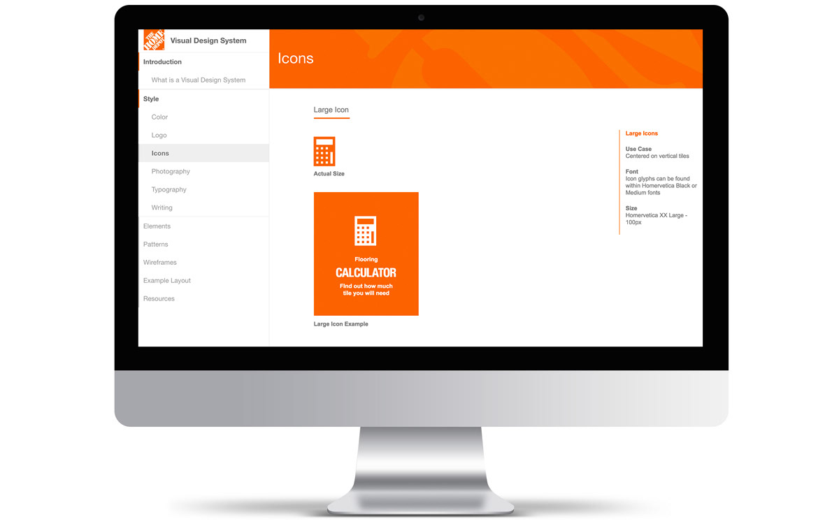 My last year at The Home Depot was spent creating and fulfilling a role as brand ambassador or design manager for dot com. My first project began as a printed VDS and morphed into the interactive style guide you see here. By working closely with our interactive developer. The microsite was a set of living guidelines to give overall guidance and provide consistency across homedepot.com.